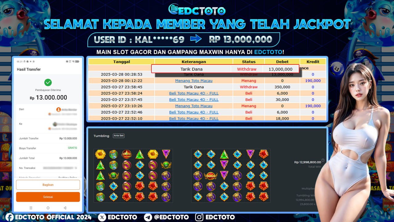 EDCTOTO juga dikenal sebagai agen toto togel terpercaya yang menawarkan berbagai jenis permainan dengan peluang menang yang menarik. Dengan berbagai variasi permainan slot resmi, pemain dapat memilih sesuai dengan preferensi mereka. Selain itu, EDCTOTO sering memberikan promosi dan bonus menarik yang dapat meningkatkan pengalaman bermain dan peluang menang.